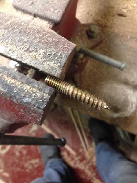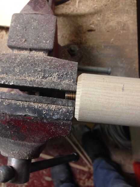Si el subproceso comienza a deslizarse dentro de la mordaza, sofocar algunos más. Puede ser un poco daño a las roscas, pero cuando atornille la pata de la mesa final en el soporte de montaje, los hilos de rosca dentro del soporte cortará a través de las áreas dañadas. Sólo trate de mantener sus puntos de sujeción consistente a lo largo de este proceso para mantener tanto los hilos de rosca intacto como sea posible permitir el fácil uso una vez su acabado.