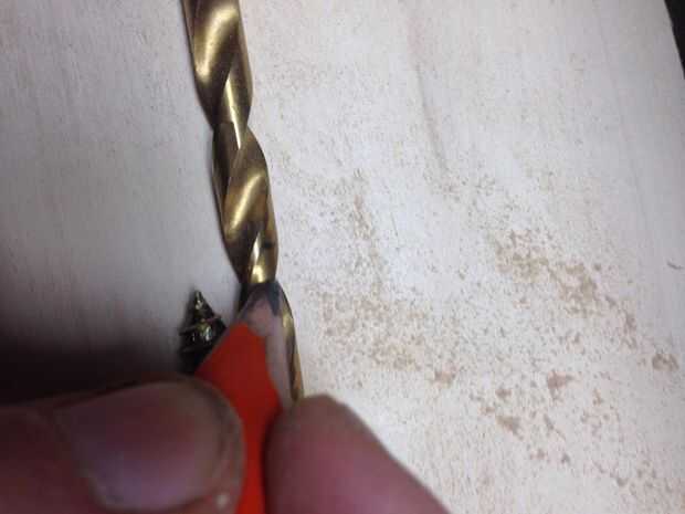 Luego tomar poco de cinta y Envuélvala alrededor de la broca, dejando una aleta pequeña al lado. Esto es una buena manera de poder decir la profundidad sin tener que tenemos que prestar atención. Una vez la cinta plana abajo a la profundidad deseada se cepille todo el polvo de la sierra en la parte superior de la pieza, y entonces sabes que estás donde necesitas estar.