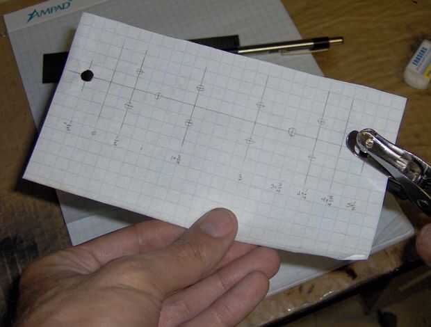 También utilice los agujeros de golpe a golpe de agujero a través de los puntos "clave". Aviso que cada "key" se define por la intersección de dos líneas perpendiculares. Para que este truco trabajar, estas líneas deben extenderse más allá del radio de perforar por el sacador de agujero.