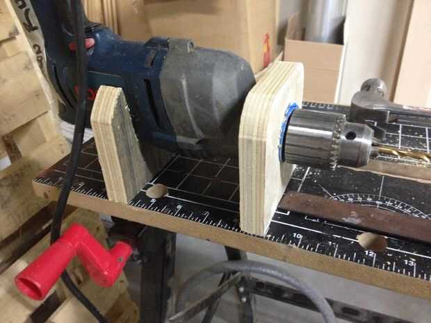 2 - abrazadera de lado carro - 4 1/4 "X 1 1/2" X 3/4 "madera contrachapada - esto los apoyos entre los dos 'manos' que espera en el taladro