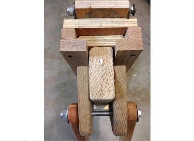 El gotcha sólo me topé fue el taladro de montaje se rompió debido a la opción madera vierta. La primera versión fue hecha de roble y dividir a lo largo de la veta al intentar apretar el tornillo de montaje. La segunda versión fue hecha de un pedazo de madera contrachapada de abedul Báltico de 13 capas. Abedul es una madera más dura fue una mejora pero las 13 capas de la madera contrachapada ha añadido realmente mucha fuerza.