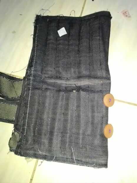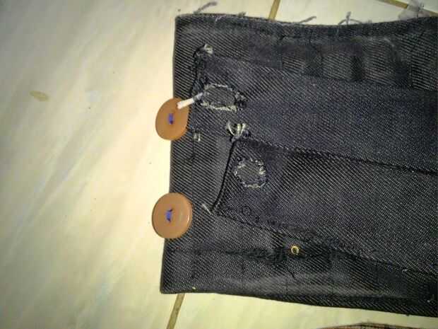 ahora fije dos botones al lado opuesto y dos correas de los pantalones vaqueros en el margen según su necesidad. SRY otra vez mi calidad de costura es malo. Ahora puede conectar las correas a los botones después de doblar u. la diversión es gere cozz se puede doblar con todos los pedacitos de taladro