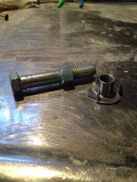 Con la Sierra de mano corta la cabeza del perno. Poner en un tornillo de banco y con el archivo de hacer cuatro puntos. Tomar la madera conducir-tuerca y capas o cortar los pernos puntiagudos. Inserte primero la tuerca y luego la tuerca del disco de madera en el perno. Inserte la tuerca autocinema en el mandril y apriételo. Todavía puede ajustar la longitud del perno, y cuando vas a tener la pieza de madera en su lugar y apretado que puede apretar la tuerca también.