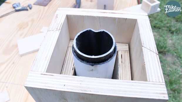 He construido dos cajas de madera que encajan perfectamente entre sí. Entonces, el gato de remolque va en la menor de las dos cajas. Una placa de montaje está soldada a la tapa de la toma que puede ser atornillada a la caja interna.