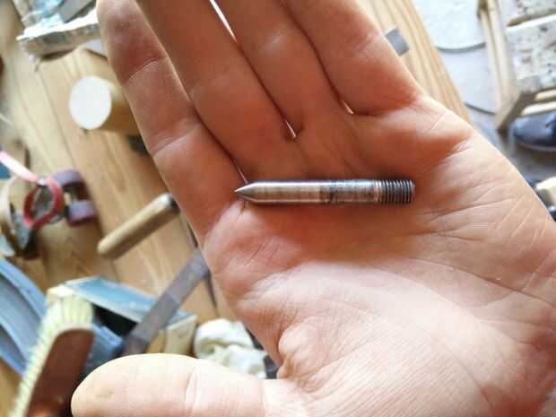 Corté las cabezas de los tornillos un par para que de hecho se convierten en barras de metal, más o menos roscas y convertido en el torno futuro con para que sea el punto en el centro de rotación. Comencé a usar un archivo áspero, luego un semi liso y uno liso y finalmente algunos 200 buff emeri y pulido.