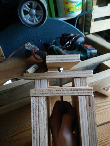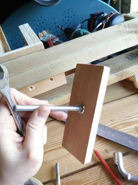 Hice un mecanismo de bloqueo que consiste en un poco de varilla roscada y una pieza de contrachapado bajo los rieles, siento que es bastante sencillo con todas las fotos pero si alguien necesita más detalles por favor pregunta a!