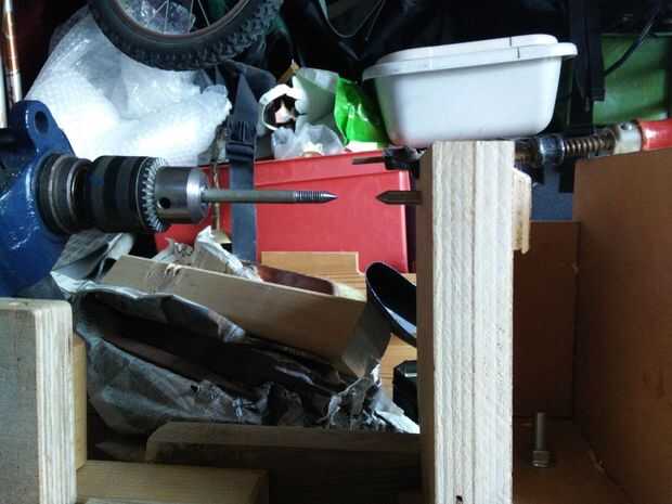 Perforé el agujero para pasador de giro de cabezal móvil presionando contra una broca en el taladro. Rudimentarios.