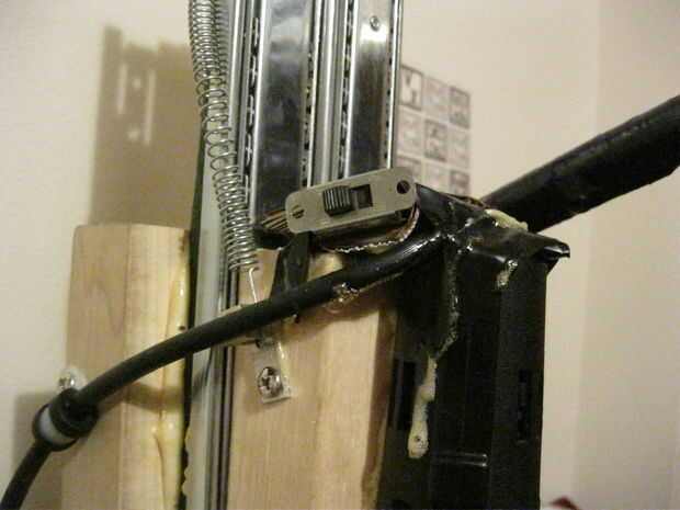 Antes de iniciar este proyecto, que probablemente podría haber hecho un poco más de investigación sobre si se ha hecho antes. Diseñé la cosa entera en una cafetería y tienes todos los materiales antes de volver alguna vez a internet. Ahora que he terminado todo el asunto, finalmente publicó el video en Internet y puede ver fácilmente que ya muchos han hecho cosas similares. Lo que propone mi taladro del resto es dos cosas: 1) el interruptor de cuchillo como mecanismo de mi palanca para completar el circuito y 2) que utilicé pegamento gorila como herramienta principal en este proyecto :) Así que ¡ disfrute! Es fácil y rápida (un fin de semana)!