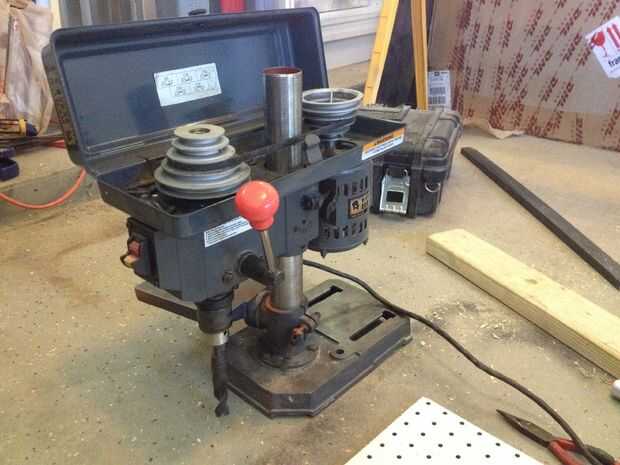 A veces necesito hacer un agujero perfectamente recto en superficies demasiado grandes para mi poco taladro de banco. Así que me fui de modificar mi barato (~ $70-ish) taladro de una "herramienta de banco" a una "herramienta de mano". El mod me permite hacer agujeros en un perfecto ángulo recto a las superficies grandes o montadas como tapas de mesa, pisos y estantes. También es reversible, por lo que puedo convertirlo a un taladro normal otra vez sin ningún problema. Lo mejor de todo, estaba libre.