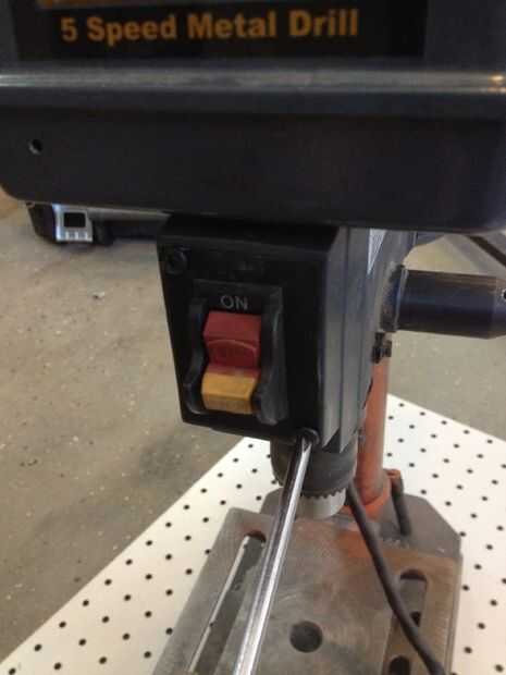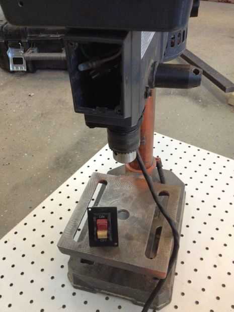 Quite el interruptor desenroscarlo y deshacer los cables. Otra vez, marca los cables vaya donde tan usted no mezclarlas después. Mi taladro tenía dos cables del interruptor y dos más atornillado a la cabeza de taladro de columna de hierro fundido.