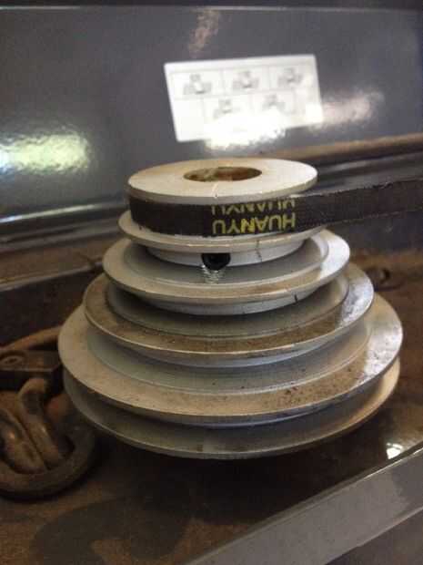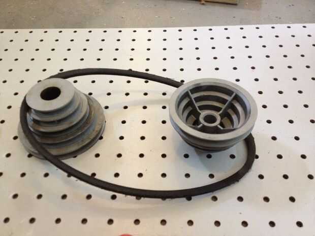 Sacar las poleas y la correa completamente con una llave hexagonal para aflojar los tornillos de fijación. Si las poleas son de distintos tamaños, que puede que desee marcar que va donde. Mina eran diferentes tamaños, pero los agujeros fueron diferentes diámetros, para no tener que preocuparse de mezclar para arriba.