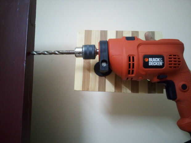 Montar el taladro de mano ordinaria imposición inactivo alrededor de esta posición, horizontal o de cualquier grado y uso como amoladora, pulidora, torno de torneado de madera etc..,