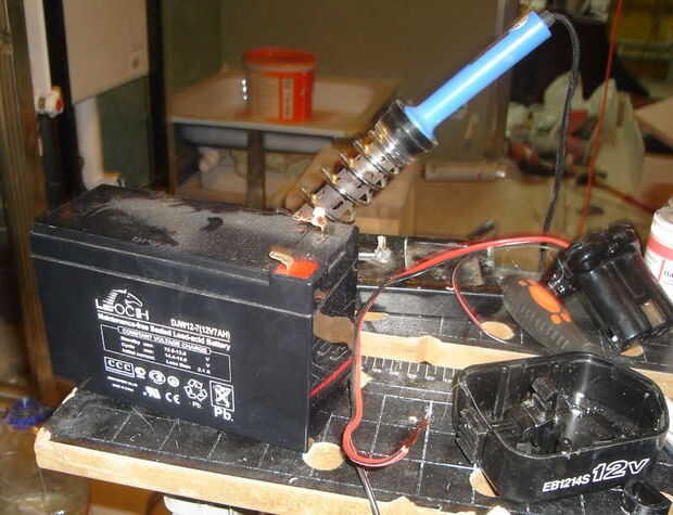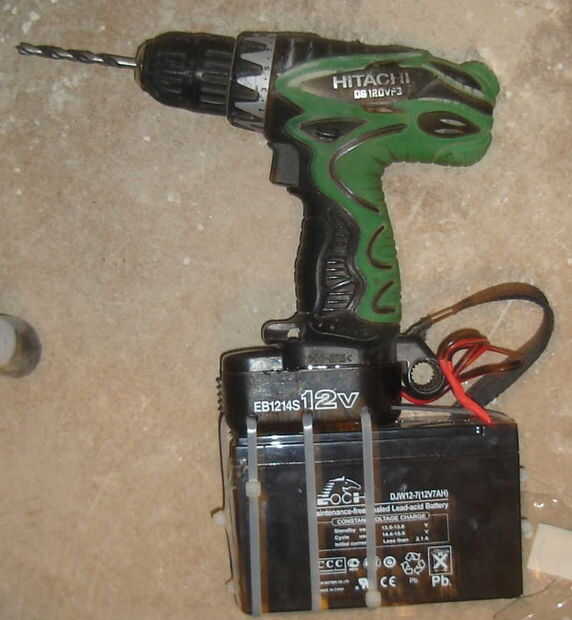 Poner la cabeza del batería detrás en el taladro menos las células viejas.
