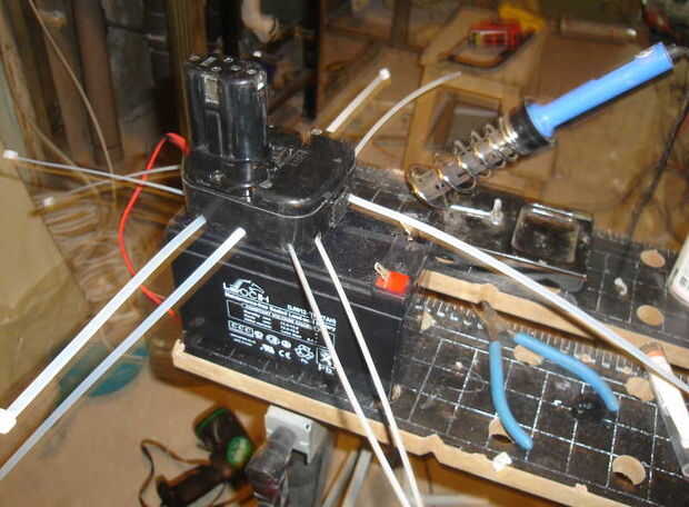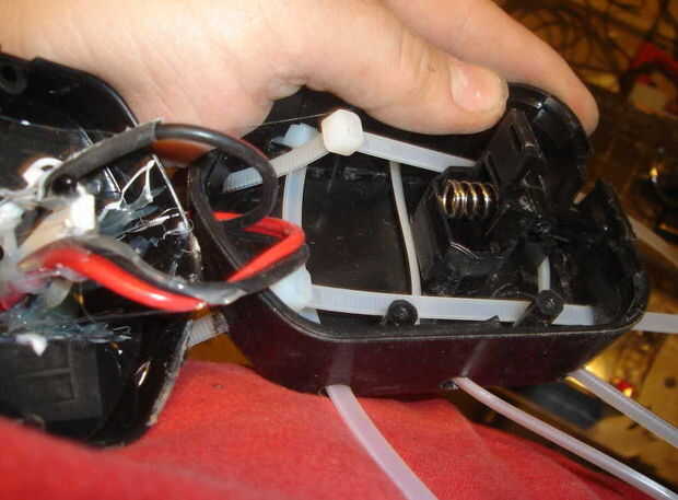 Adición de silicona caliente y ocupar la batería nueva con lazos de nylon.
