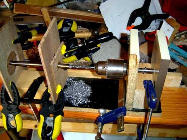 Era capaz de perforar hacia fuera el extremo de la barra larga 10mm se muestra en algunas de las fotos haciendo un soporte de acciones que podría llevar a cabo otro mandril, montar un taladro en el que uno, un sostenedor de punto medio para detener la barra de perforación balanceo y montaje de la barra en el taladro.