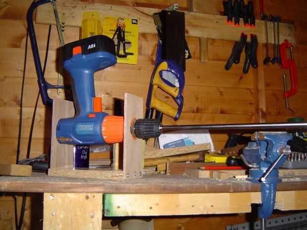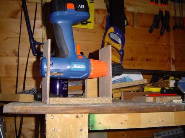 Me pareció necesario añadir un par de barras de madera a la parte superior del soporte taladro, dejar el collar de taladro son empujado fuera de su agujero cuando se presiona con la pieza de trabajo (foto a seguir)