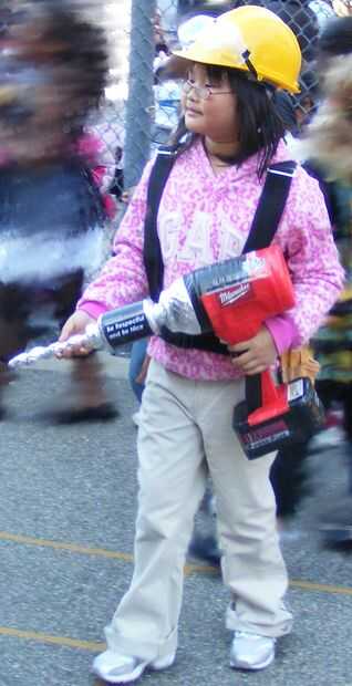 Esto se utilizará como un apoyo para contratista/constructor de Caitlin disfraces de Halloween para este año (fácil-casco/gafas toolbelt y generalmente schoolclothes). Sí, ella sabe cómo manejar herramientas con seguridad. Y con foto de ella en traje de su desfile de la escuela.