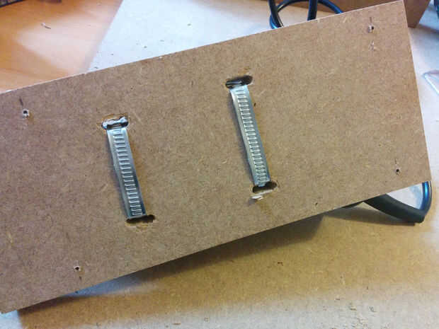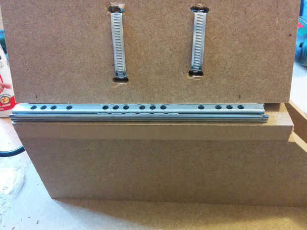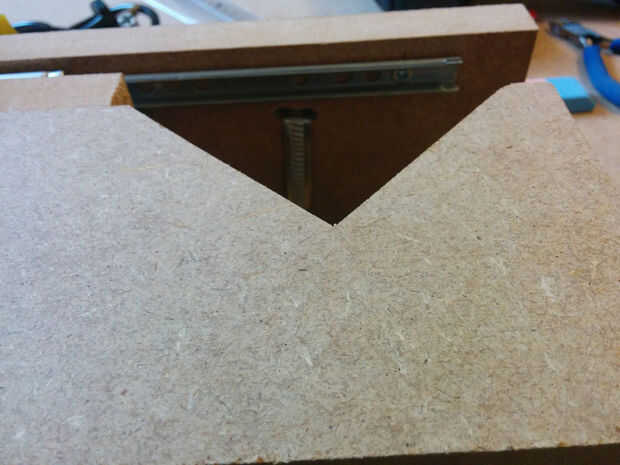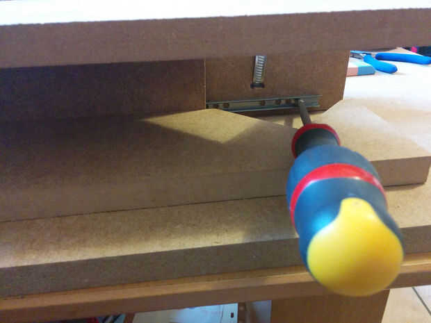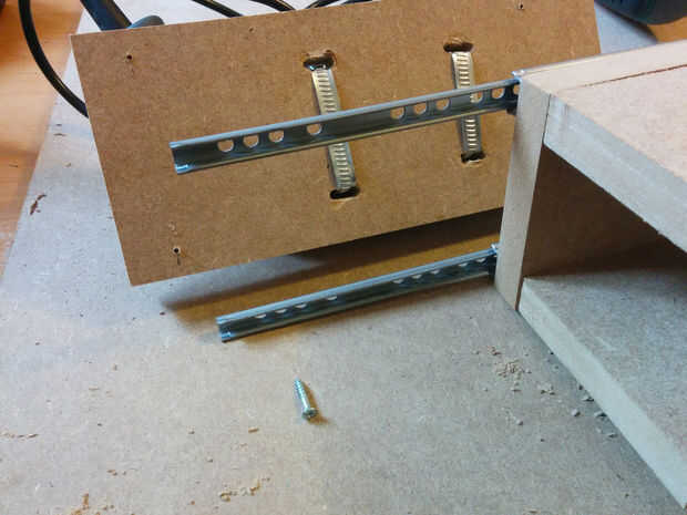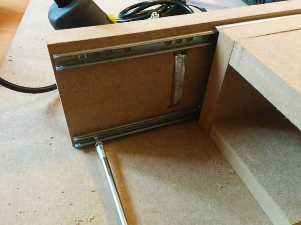 • Tienes que marcar 4 en la parte posterior del mini taladro parte y taladrar 4 orificios pequeños. Necesita los agujeros para el tornillo mini 4 atar las correderas a la madera. Asegúrese de hacer una buena alineación.