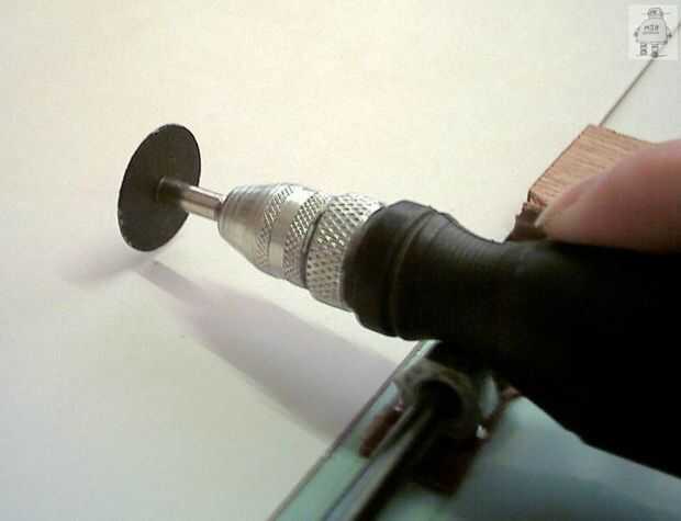Hice esta guía de una placa de metal de desecho, dos recortes de madera, un trozo de barra de acero de desecho, dos tuercas grandes y un pedazo de paxolin (material de tablero revestido cobre del circuito impreso)