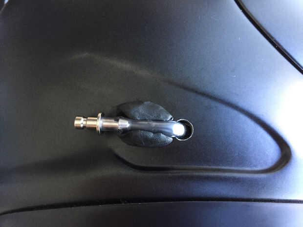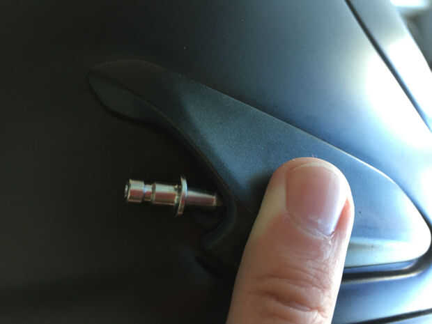 - Fijar el accesorio en su lugar utilizando una pequeña cantidad de Sugru; Utilice la cubierta de ventilación para un montaje de prueba. No exagere con el Sugru aquí--la nueva cubierta del respiradero hacen la mayoría de la obra. También tenga cuidado para no pellizcar el tubo (un poco es aceptable) desde el orificio de ventilación.
