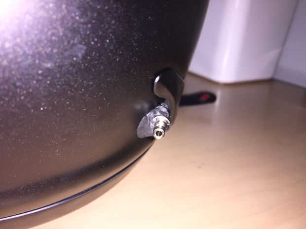 - Utilizar otro objeto (en este caso utilicé la vieja cubierta del respiradero) para mantener la distancia de montaje del casco durante el tiempo de curación.