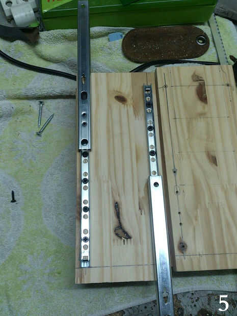 TIP: Tal vez esto es útil o tal vez soy demasiado paranoico, pero marqué las guías para saber que pasa que después de marcar los agujeros de taladro, teóricamente son exactas, pero de todos modos, ¡ no arriesgue... Después de los agujeros son han sido perforados, atornillar las guías a la pequeña Junta (Foto 5).