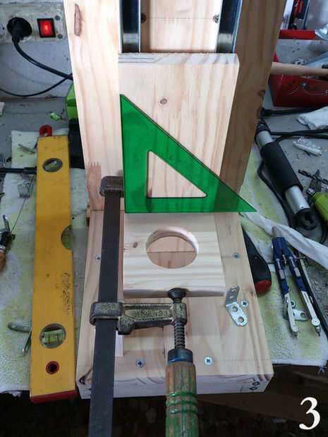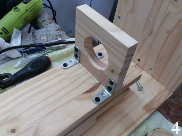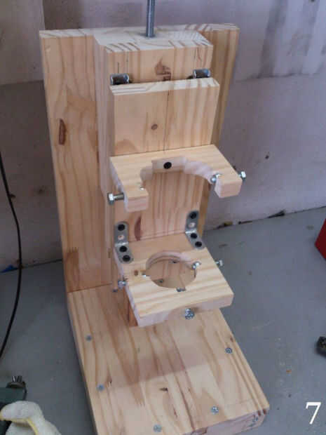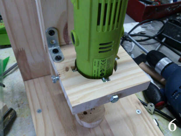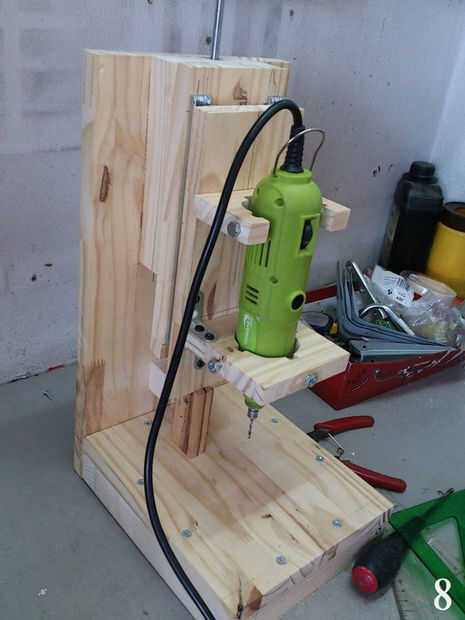 Adjunto otro soporte, esta vez un poco más alta, también utilizo algunos tornillos para permitir cierto margen sujetando la herramienta (foto 6, 7 y 8).