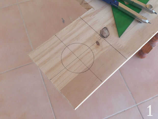 El lado plano (el lado que no ha sido cortado) se unirá a la Junta, los otros lados se lija para quitar las abolladuras de la sierra y hacer una marca en el centro de cada uno de ellos para hacer un agujero para pasar los tornillos a través de.