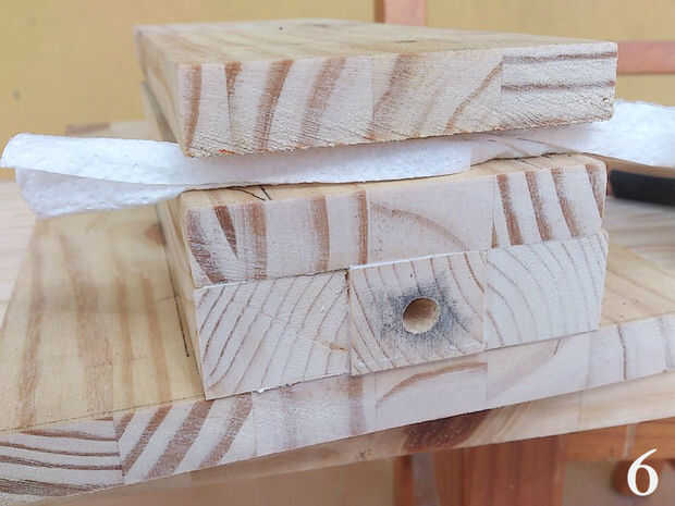 Pegar un trozo de listón en la parte superior con un agujero perforado a través de mantener la barra estable (fotos 4, 5 y 6)