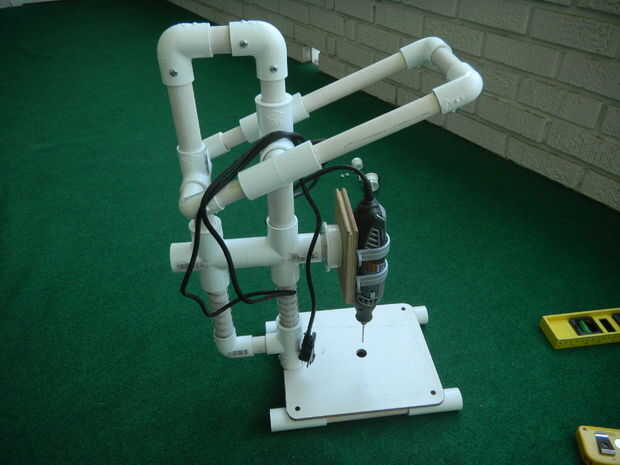 9 1/2 "x 8 1/2" Junta del tornillo en el bastidor de base. Recomendamos el uso de avellanado. Verifique la Dremel y ajuste. Si usted sólo necesita una prensa del taladro, el taladro PVC Dremel ha sido ya terminado. Siguiente paso es solamente quiere darle más funciones.