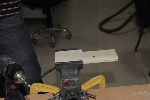 tengo una tienda muy pequeña.  He querido poner mi taladro en la tienda.  No quiero ocupar espacio en mi mesa de trabajo y no quiero cosas en la esquina donde tendría las paredes de la manera cuando trabajé en pedazos más grandes.  La solución era un