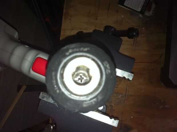 4. Introduzca la taladradora-atornilladora con cabeza Phillips Broca y extensor en el portabrocas del taladro condenado. (imagen 3)