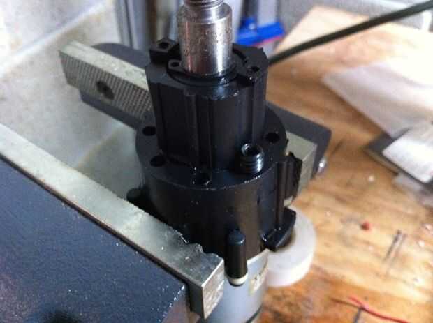 Una vez que se quite todo lo usted necesita bloquear la caja de cambios en la configuración del "taladro". Para ello Inserte un tornillo en un agujero donde los rodamientos de bolas utilizados y apriete hasta que no resbale. Tiendo a poner los dos tornillos (uno a cada lado) para redundancia.