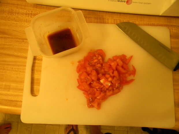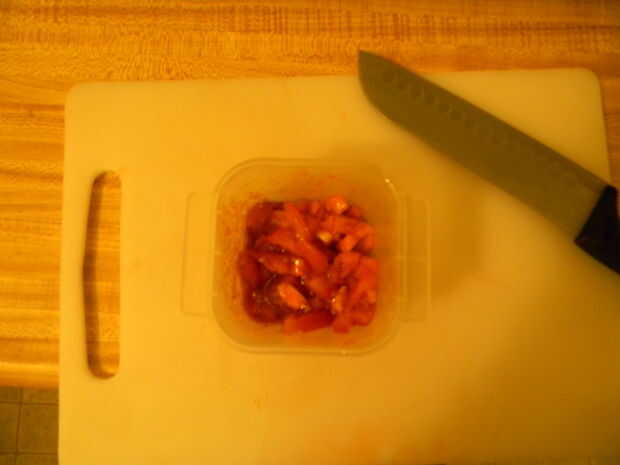 Lo primero que tienes que hacer es poner los dos filetes de tilapia sin abrir en el microondas durante dos minutos y poner un chorrito de aceite de oliva en una sartén pequeña a fuego medio. Mientras que los filetes están preparando en el microondas y se calienta el aceite, cortar un tomate pequeño y mezclarlo con carne y sazonador de carne, sal de ajo, pimentón, condimento criollo y aceite de oliva en un recipiente plástico pequeño.