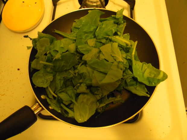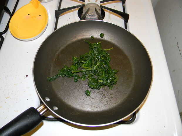 Toss los verdes en el aceite de oliva caliente. Añadir cilantro, pimienta negra y sal de condimento al gusto. Sólo una pizca de cada uno, con un poco más de cilantro. Mezcle todo durante tres minutos también cuatro, o hasta que se ablande por.
