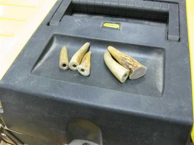 El propósito de perforar un agujero en la pieza de asta de ciervo es tener una cavidad para poner en un artículo especial. En este caso es las cenizas de un ser querido.