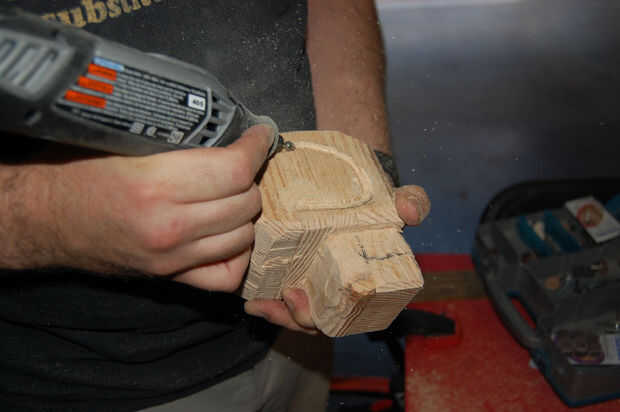 Una vez que tienes la forma básica de su talla hace su tiempo para pasar a la rotativa Dremel. Utilizando las herramientas de talla puede ir y empezar a añadir detalles.