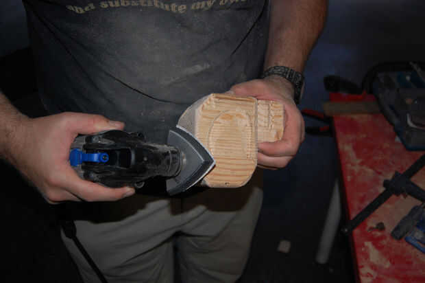 Empezar con un papel de grano arena de curso (60 o 80) y eliminar las zonas ásperas y suavizar cualquier corte irregular. Una vez que se eliminan todas las zonas ásperas, cambie a un grano mediano (120) y finalmente a un grano fino (220).