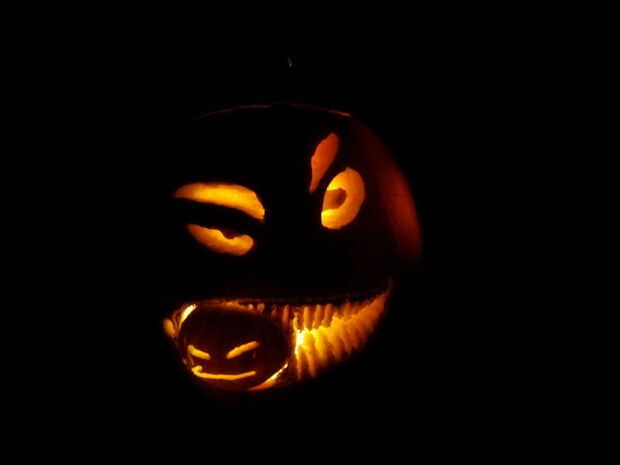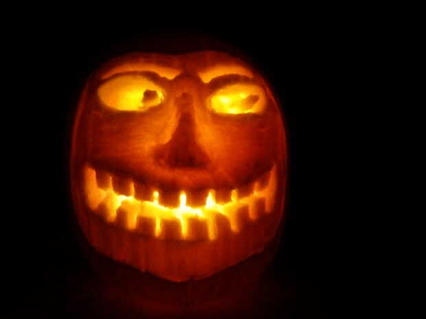 Si se utiliza una vela necesita tener 2 agujeros adicionales. Hacia la parte inferior para entrada de aire y directamente sobre la vela para una "chimenea". Para encontrar este lugar, quemar una vela por unos minutos hasta que se forme carbón en la calabaza y cortar esa zona.