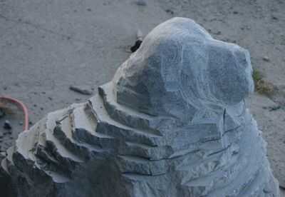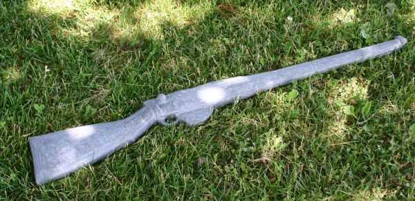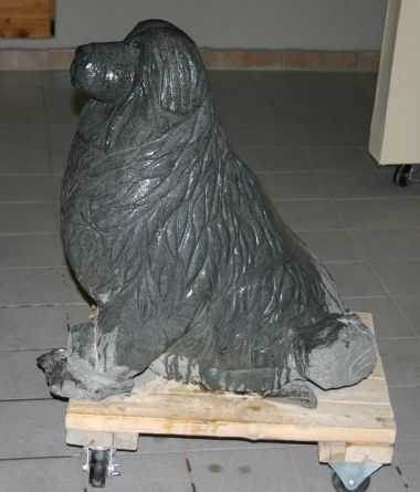 Me sorprendió encontrar que las esculturas se instalarían en una pequeña losa de piedra sólo un pie del suelo. Pensé que el perro y casco sería aceptable, pero me preocupaba el rifle.