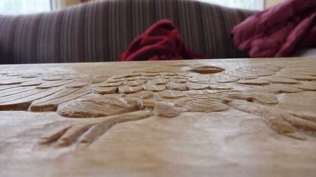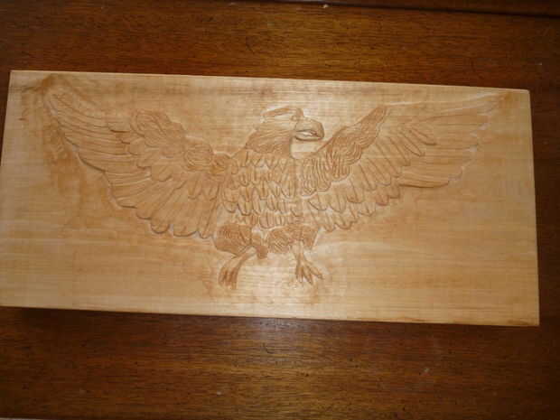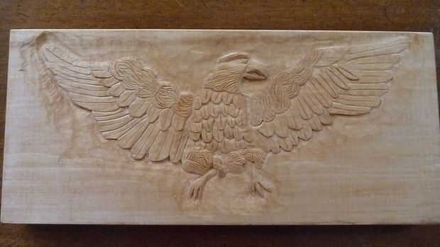 se trata de una talla de relieve de un águila joven que hice en mi clase de tallado en madera. Aproximadamente se basa en un diseño en el manual Marina de talla, pero alteré para hacerla sin las flechas o la cinta, porque este fue uno de mis primeros proyectos. Usé una variedad de talla cinceles pero en su mayoría usados #2 y #3 cinceles, junto con un cincel para sesgar afilado y una herramienta de v. Hice con tilo, porque es tan perdonador. Usé un acabado de aceite de linaza, porque odio los humos desagradables de acabados más normales. También cepillar los bordes de la madera con un plano de la caja para que sea menos agudo. Este proyecto me llevó cerca de 40 horas, pero un escultor experimentado tal vez podría hacerlo en menos de 1/4 de tiempo. Espero que les guste!