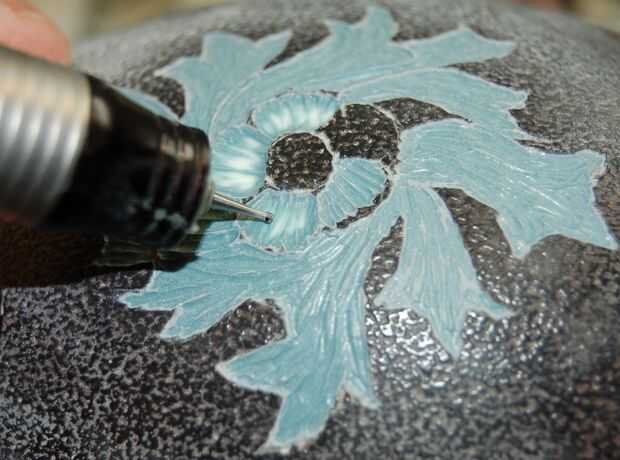 Talla de un patrón de enrejado y acanto en un emu cáscara de huevo (13 / 22 paso)