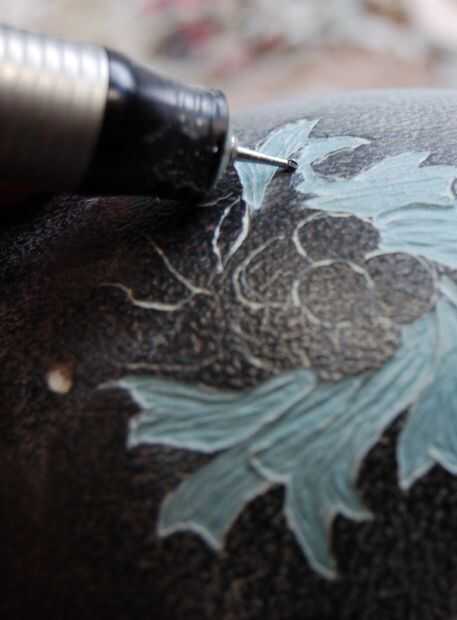 Talla de un patrón de enrejado y acanto en un emu cáscara de huevo (6 / 22 paso)