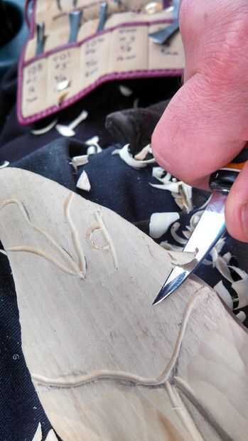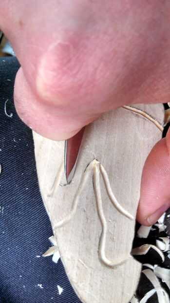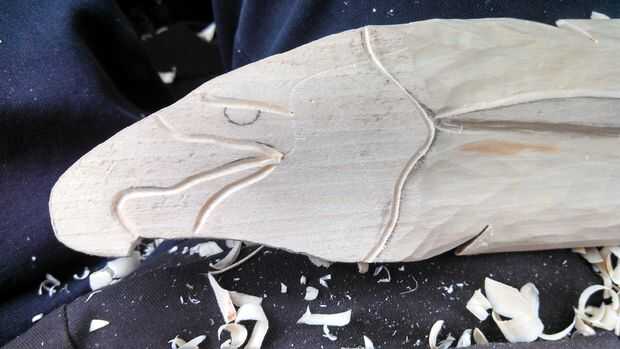 V-herramienta de uso para hacer parar los cortes a lo largo del pico, la parte posterior de la cabeza y la línea sobre el ojo. Me gusta tomar mi cuchillo un corte la forma redonda del ojo, luego retire la madera alrededor del círculo del ojo para que sobresalga un poco. Ahora se redondea el ojo. Empezar a redondear los bordes de la cabeza y pico. Entonces corte hasta la parada corta en el pico. Usted se ser extracción de la madera desde el pico por lo que es más abajo de la cabeza. El pico más bajo debe ser más profunda entonces el pico superior. Redondear todos los bordes duros a lo largo del pico y la parte superior del ojo. También hago seguro que no vio las marcas en cualquier lugar uno la talla. Utilice un cuchillo o gubia para retirarlos.