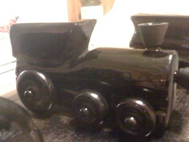 Talló la forma de la campana de la luz y la pila en el extremo de un palo de escoba vieja. Una vez que parecía adecuado, simplemente corté lo suelta. Una vez que las piezas se hacen, simplemente perforar un agujero para pegar en. También he añadido ruedas de madera almacén comprado porque las ruedas son difíciles de hacer a mano... Acabé con un buen abrigo de lijado y pintura. El proyecto fue muy divertido y fui a una gran causa!!! Cortar feliz!!!!!!