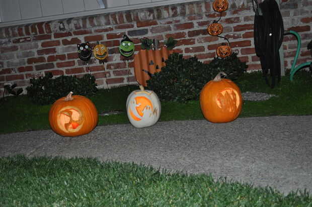 cada año tallar por lo menos una media docena calabazas. Mi esposa tiene acostumbrados unos cuantos así. Recientemente, nosotros hemos estado recibiendo otros amigos y familiares a bordo, les enseña a tallar sus propias calabazas de fantástico aspect