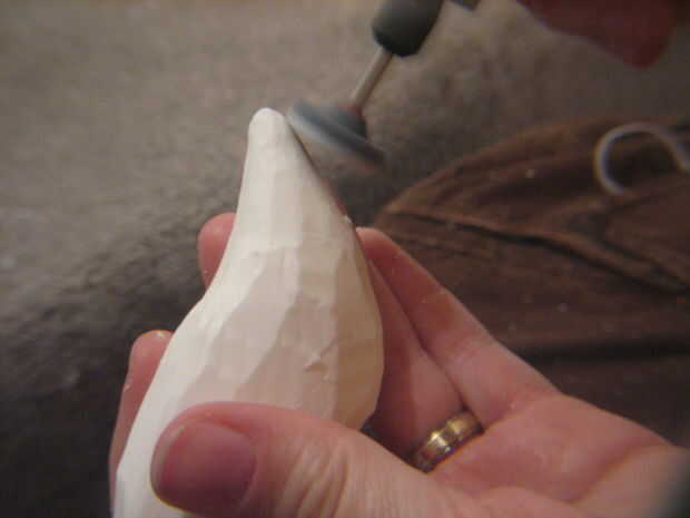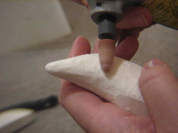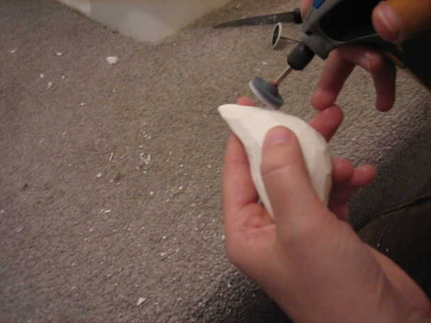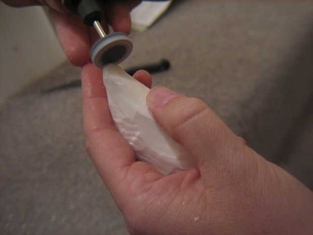 Para suavizar los bordes, la Dremel funciona mejor que un cuchillo, especialmente uno dentado. Probar con varios pedacitos de pulido diferentes dependiendo de la forma que estás trabajando.