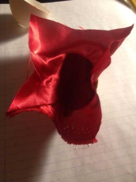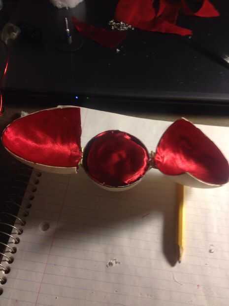 Para esta parte usted necesita paciencia y velocidad juntas. Tomar las piezas de huevo y cortar un cuadrado de tela sobre una media pulgada más grande alrededor de todo el camino. Luego, con su pegamento pegamento pistola zig zag en la parte inferior de la pieza está trabajando, entonces rápidamente y suavemente Coloque a la tela en y presionar para que no queden arrugas. Lo mismo para unir los bordes haciendo pequeñas áreas a la vez. Recorte el exceso tan cerca como puede con las tijeras y luego el resto dentro del pegamento o usar un encendedor con mucho cuidado fundirlo al borde.