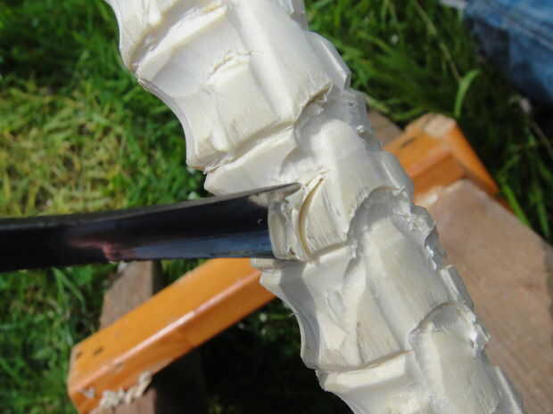 Después de todos los había tallado, solía mi gubia casera siguiendo las curvas hacia adentro la vértebra suavemente en los salientes óseos.