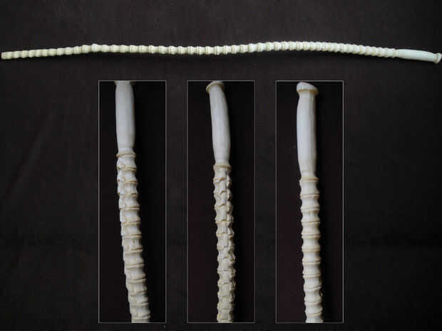 Usé una Dremel con un accesorio de lijadora de tambor para las curvas de cada vértebra y un poco de fresa pequeño para limpiar partes ásperas alrededor de los huesos que sobresalen de la arena.